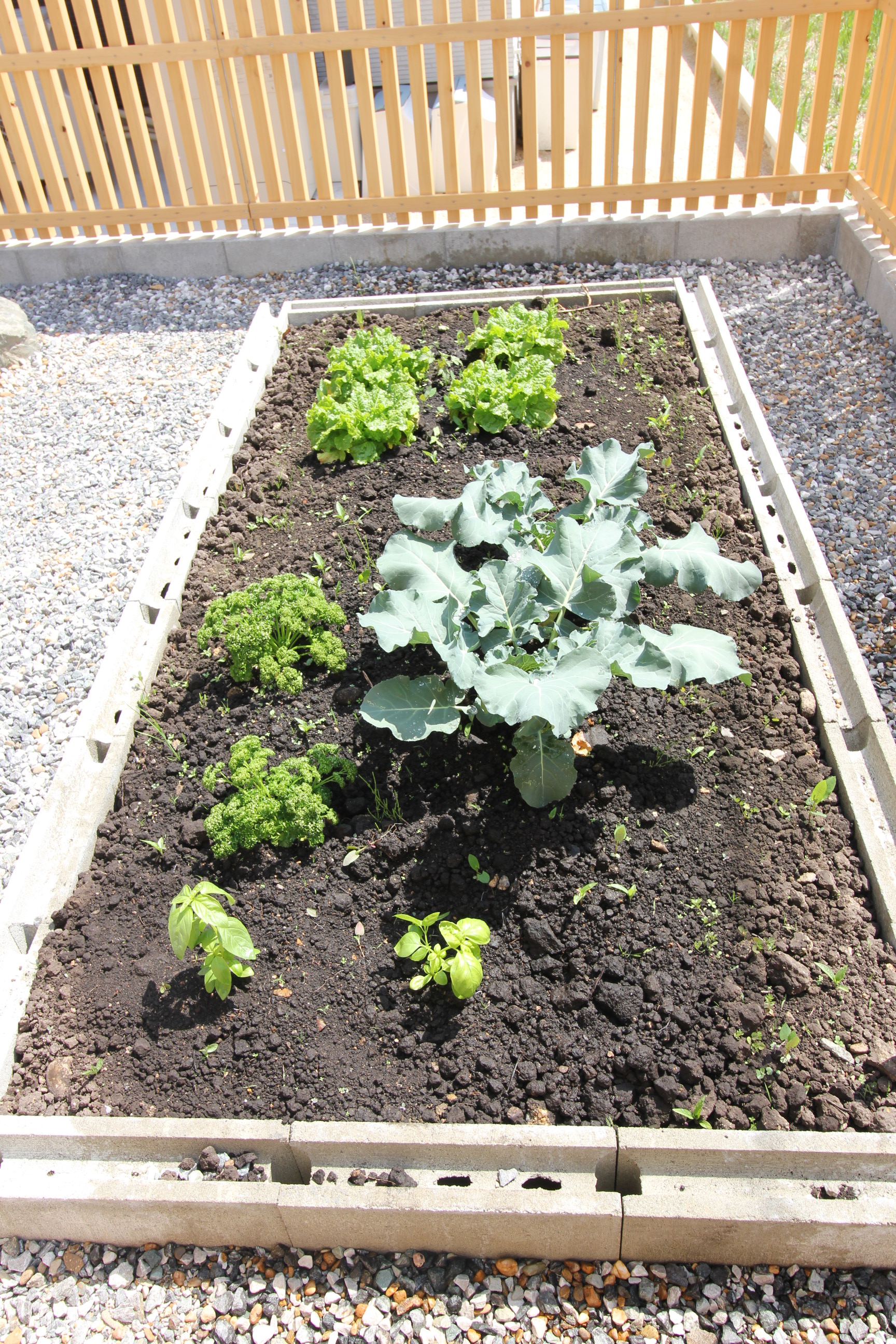 菜園スペースは、簡単にブロックで囲いを作り、土を入れただけです。