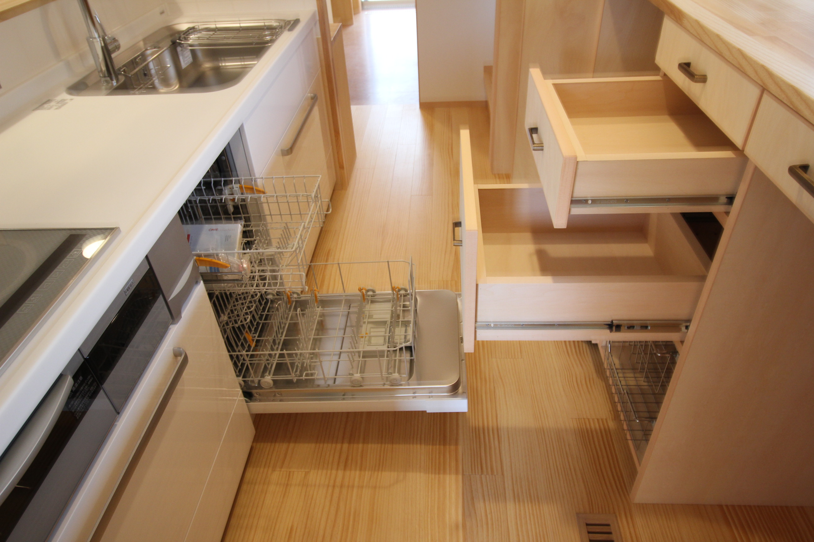 食洗機からの食器の仕舞い方や、ロボット掃除機の居場所も検討しながらまとめました。