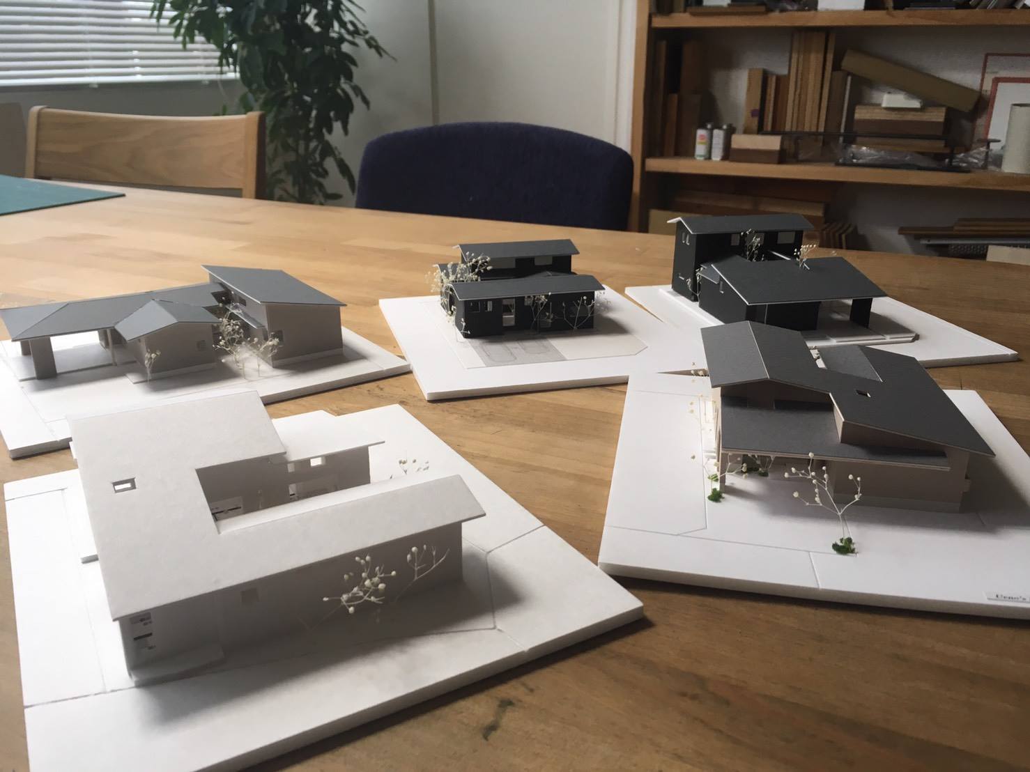 模型や手書きのスケッチを多様してご提案してきた建築・家具もいよいよ完成までラストスパートです。