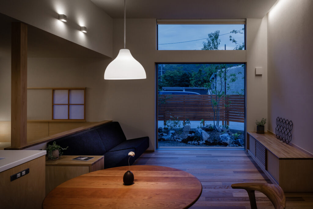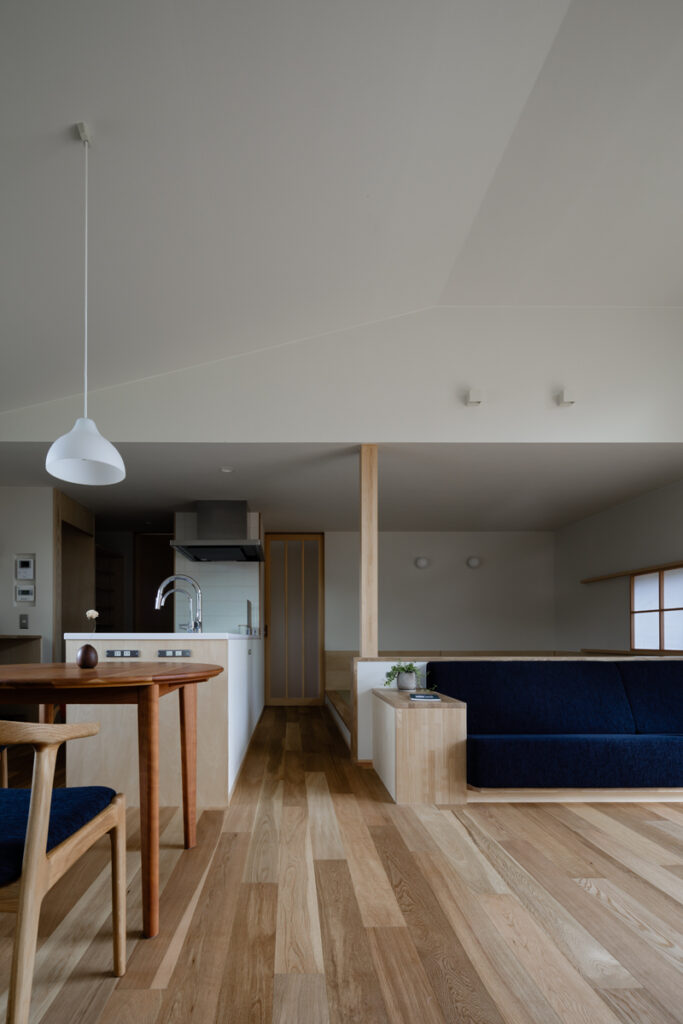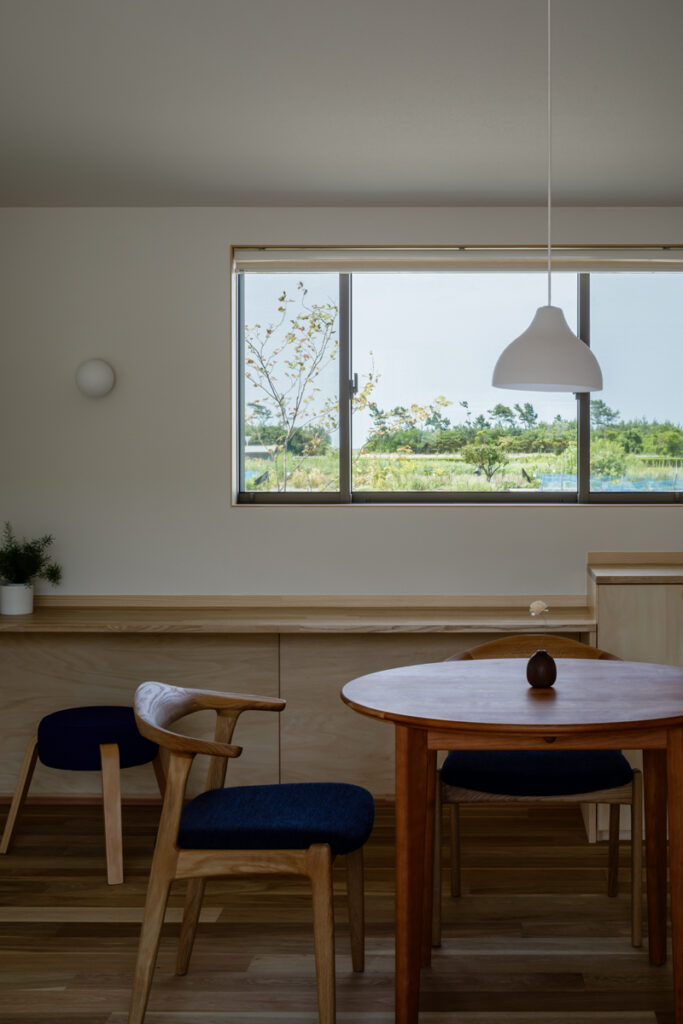 2025.9.30 家づくり事例 家族の思い出を刻む、明るく開放的な平屋 家族とつながる時間 田畑に囲まれた緑豊かな敷地でのご計画。 大きな切妻屋根が際立つ平屋です。 個の空間を大切にしながらも、LDKには色々な居場所をちりばめ、家族がのびのびとすごせる空間を計画しました。 . DATA 米子市淀江町 木造平屋 在来工法 床面積:36.04坪 (1F:27.90坪 ガレージ:8.14坪) 敷地面積:122.48坪 竣工年:2023年 事例一覧に戻る
